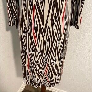 Chico's Brown Red Cream L Sleeve Scoop Neck Knee Length Sheath Dress SZ 4