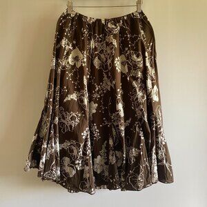 Chico's Brown Tiered Skirt White Floral Print Chico's Size 0 US Size 4