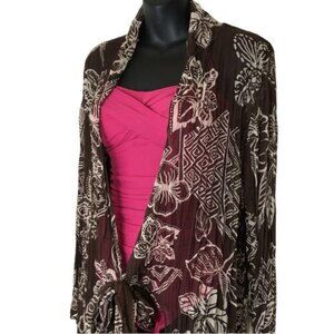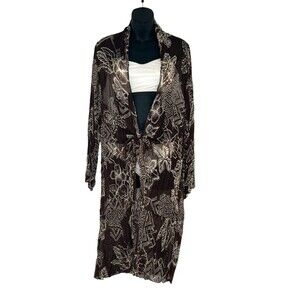 Chico's Brown Tropical Swim Cover Tie Front Sheer Beach