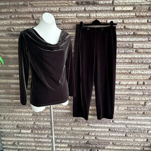 Chico's Brown Velvet Draped Neckline Pull On Pants Outfit New