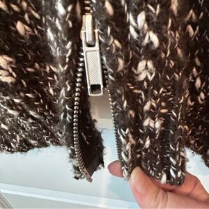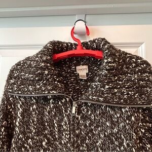 Chico's Brown White Fleck Full Zip Wool Blend Turtleneck Sweater Sz 3/XL Heavy