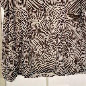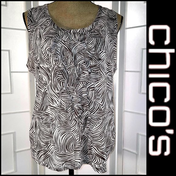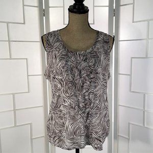 Chico’s Brown & White Swirls Sleeveless Shell Tuxedo Ruffle bib