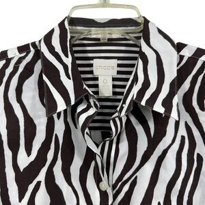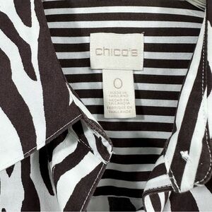 Chico’s Brown White Zebra Print 3/4 Sleeve Blouse, Size 0