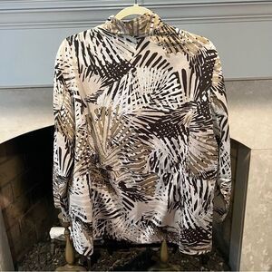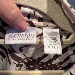 Zenergy by Chico’s lightweight size XL or Chico’s brand size 3 zip front jacket in excellent condition. This is a gorgeous leaf pattern in brown and beige.
