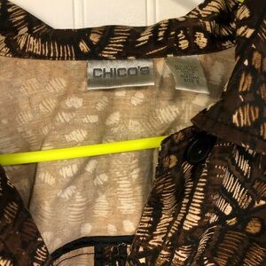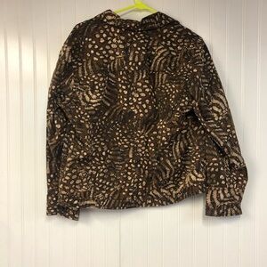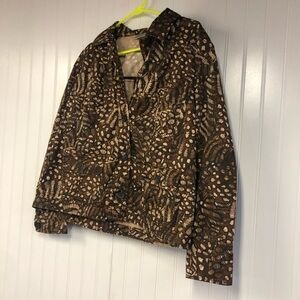 Chico’s Brown and Tan Patterned Jacket Button Closure Size 2 Large