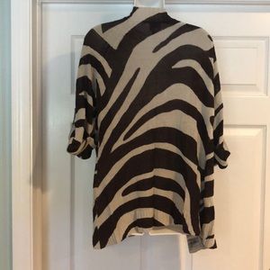 NWOT Brown & Tan zebra design cardigan. Has button up design on shorter sleeves. Linen & Rayon blend. Size 1 which is a medium.
