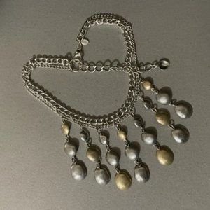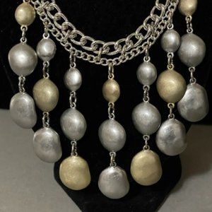 Chico's Brushed Gold and Silver Tone Double Chain Statement Collar 16" Necklace