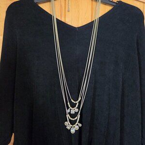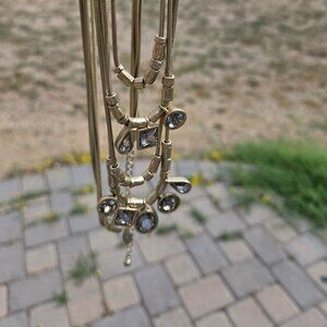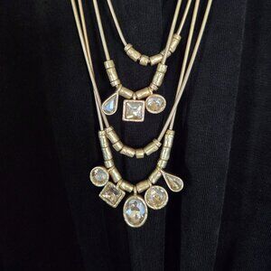 Chico's Brushed Goldtone Long 4-Strand Necklace w/ Chunky Rhinestones