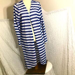 Blue & White striped open swim cover up cardigan duster. Pre-owned in good condition. Please refer to pictures for best description and condition verification.
