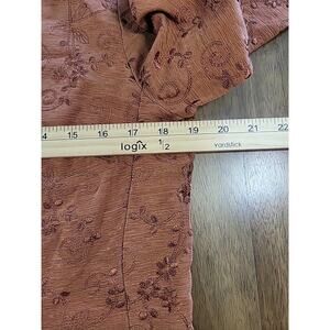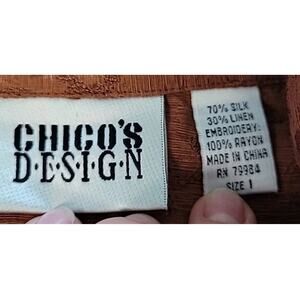 Chico’s Burnt Orange Embroidered Shacket 3/4 Sleeve Sz 1 M EUC