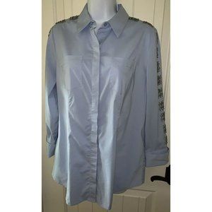 Chicos Button Down Beaded Sleeve Blouse Tunic Top Sz 0 (SMALL) Blue Stretch EUC