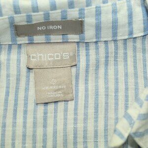 Chico's Button Down Blouse Striped 100% Linen No Iron White Blue Women's O / 4-6