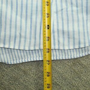 Crafted for the style-conscious individual, this Chico's button-down blouse is a testament to understated elegance. With its classic white and blue striped pattern, the blouse brings a touch of sophistication to any ensemble. The 100% linen fabric ensures breathable comfort and a relaxed fit, perfect for both casual and professional settings. Available in a size Small, which corresponds to a Regular size 4-6, the blouse is designed to flatter with a timeless silhouette. The no-iron fabric means easy care and maintenance, allowing you more time to enjoy your day without the hassle of constant ironing. Add this versatile piece to your wardrobe for an air of effortless chic.