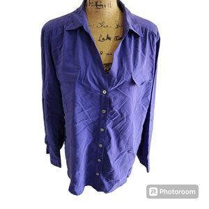 Chico's Button Down Blouse Womens SZ L Office Career Business Long Sleeve Work