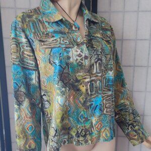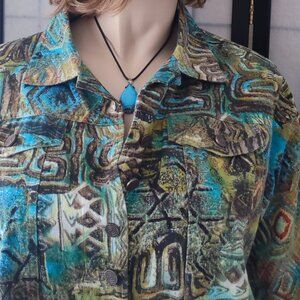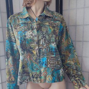 Chico's Button Down Jacket Coat Aztec Southwestern Sante Fe Cotton/Linen Sz 2/L
