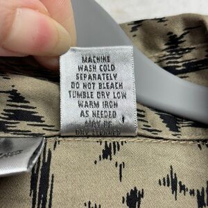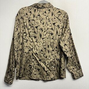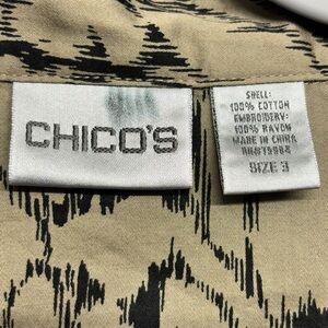 Chicos Button Down Shirt Embroidered 3 / L Tan Black Abstract Floral