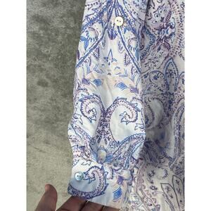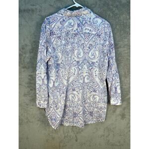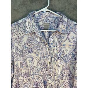 Chico's Button Down Tunic Blouse Large Pastel Purple Paisley Academia Boho Twee
