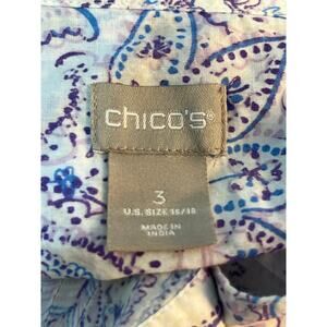 Chico's Button Down Tunic Blouse Large Pastel Purple Paisley Academia Boho Twee, in great condition.