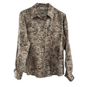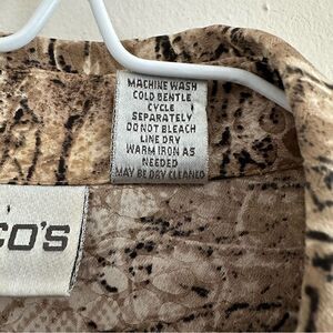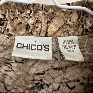 Chico's Button Front Blouse Silk Rayon Blend Snake Skin Print Women’s Sz S (0)