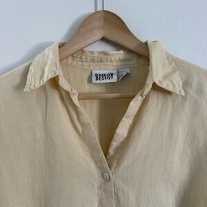 Chico’s Button Front Blouse Top Shirt 100% Linen Size 1 / Small Pale Butter Yellow