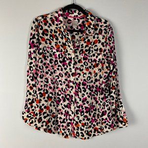 Chicos Button Shirt Womens 2 US 12/14 Large Animal Polka Dot Mixed Print Rayon