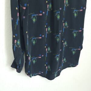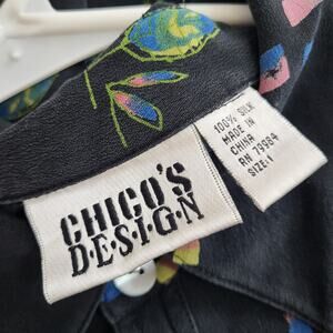 Chicos Button Up Blouse Womens M Silk Casual Artsy Abstract Floral Plants