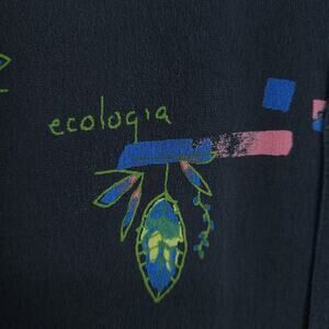 ~ Black with an abstract floral / leaf / plant type print and the word ecologia
