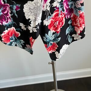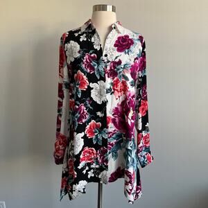 Chico's Button Up Handkerchief Hem Blouse Tunic Black Floral Chico's 0