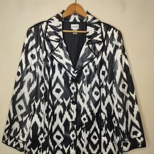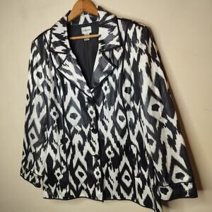 Chico's black white pattern button up jacket. Size 2 / L. Cotton / polyester. (22821)