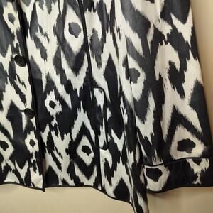 Chico's Button Up Jacke Black White Stripe Tribal Boho Shiny
