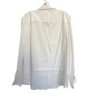 Chico's Button Up Shirt 3 US XL White Chiffon Sleeve and Layered Hem Stretch