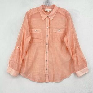 Chico’s Stylish peach button-up shirt with front pockets. Perfect for casual wear.Size 2 (12)