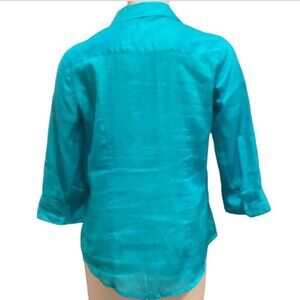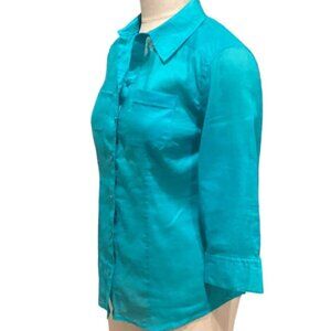 Chico's Button Up Top 3/4 Sleeve Ramie Cotton 0(S/4) Turquoise #144J