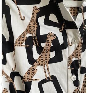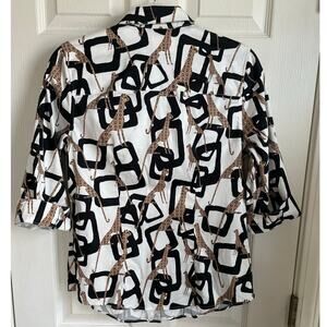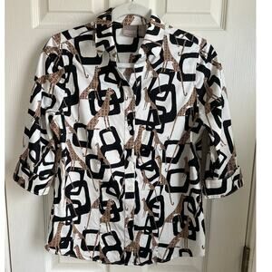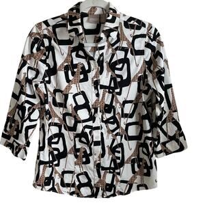 Chico’s Button Up Top Cheetah Geometric Print Sz S Shirt Blouse Whimsical Artsy