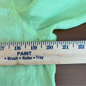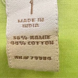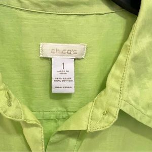 Chico's Button Up Top Size 1 (Medium) Yellow Green Ramie Cotton 3/4 Sleeve Sheer