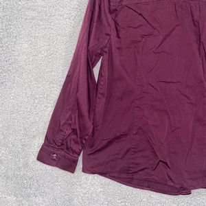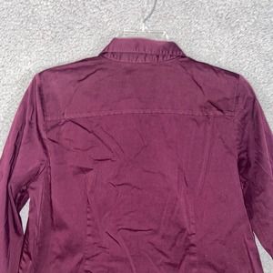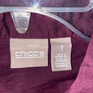 Chico's Button Up Top Womens 1 Burgundy Casual Collared Long Sleeve Cutout