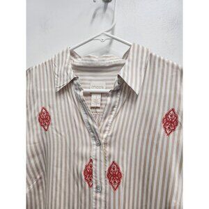 Chicos Button up Shirt Womens Medium Embroidered Striped Long Sleeve BOHO Casual