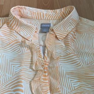 Like-new Chico’s orange zebra-printed ruffles button-up blouse.
