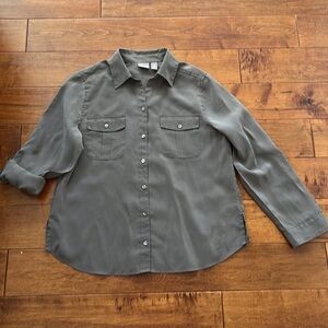 Chicos Buttons Down Blouse Olive Green Long Sleeves Size L chest Pockets