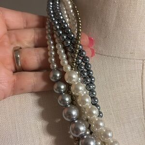 Chicos CHUNKY Multi-Strand Pearl bead Necklace white gray gold taupe pearls NWOT
