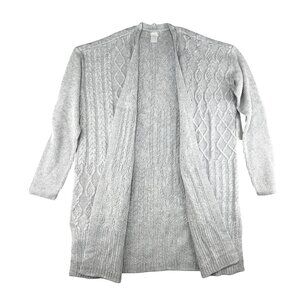 Chico's Cable Stitch Open Front Cardigan Sweater Gray Wool Cashmere Size 1 US M