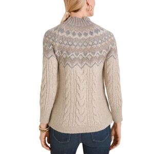 Chico’s Cable Yarn Sweater Fair Isle Wool Blend Alpaca Mock Neck Tan/Gray