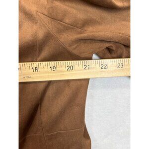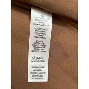 This chic brown jacket features a tailored fit, double-breasted design with metallic accents, and a comfortable polyester/spandex blend ideal for casual to dressy wear.