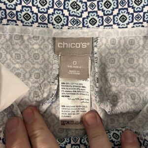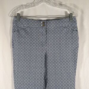 Chico's Capri Pants Women's 4 Blue White Print Mid Rise Cotton Blend