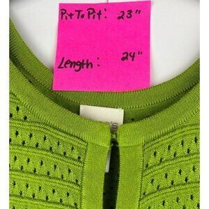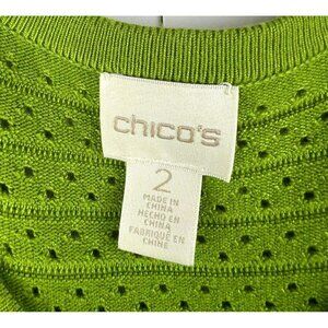 Chico's Cardigan 2 US Large 3/4 Sleeve Lime Green Open Crochet Hook Eye Sweater