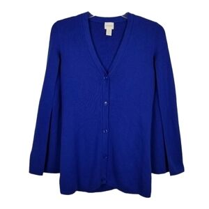 Chico's Cardigan Cape Sweater Vneck Button Sleeveless Blue Size 0 Small/Medium