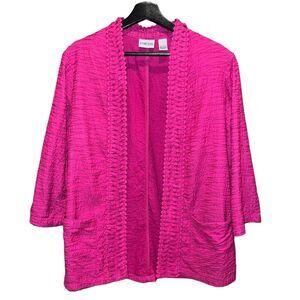 Chicos Cardigan Jacket Womens 2 (US L/12) Pink 3/4 Sleeve Pockets.