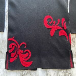 Chicos Cardigan Long Open Front Scroll Print Black Red Size 0 S