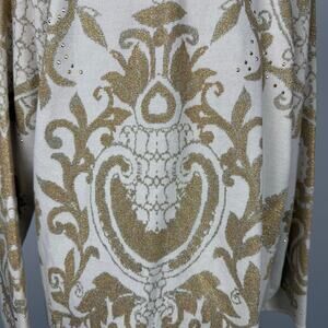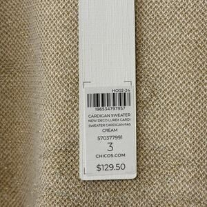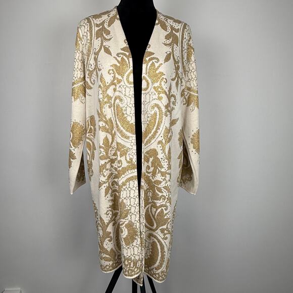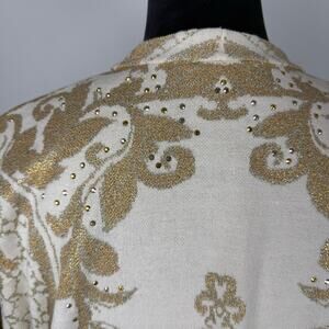 Chicos Cardigan Lurex Gold Shimmer Open Front Plus Size Rhinestone Sweater New