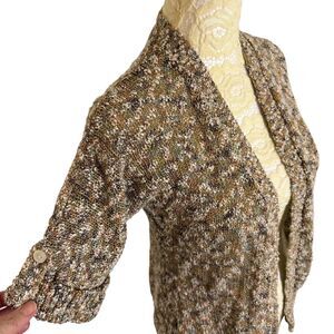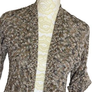 Chicos Cardigan Open Front Marled Knit Roll Tab Half Sleeve 0 US S